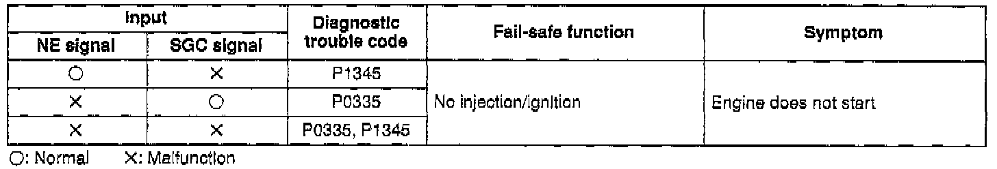 - If the NE signal circuit has an open or short, Diagnostic Trouble Code No.P0335 is output.