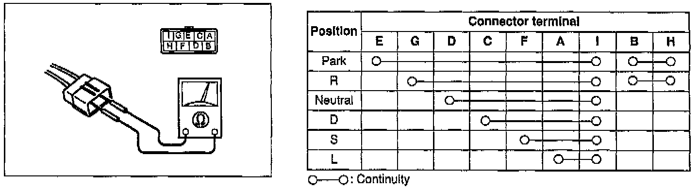 5. If not as specified, replace or adjust the transmission range sensor.