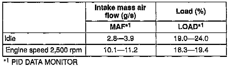 NOTE: The NGS shows the mass air flow rate and load value by selecting "MAF" and "LOAD" on the NGS display.