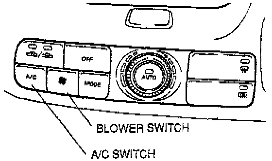 2. Turn on the blower switch and A/C switch, and verify that the magnetic clutch operates.