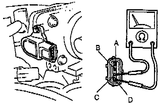 3. Check for continuity between throttle position sensor connector terminals C and D by using an ohmmeter.