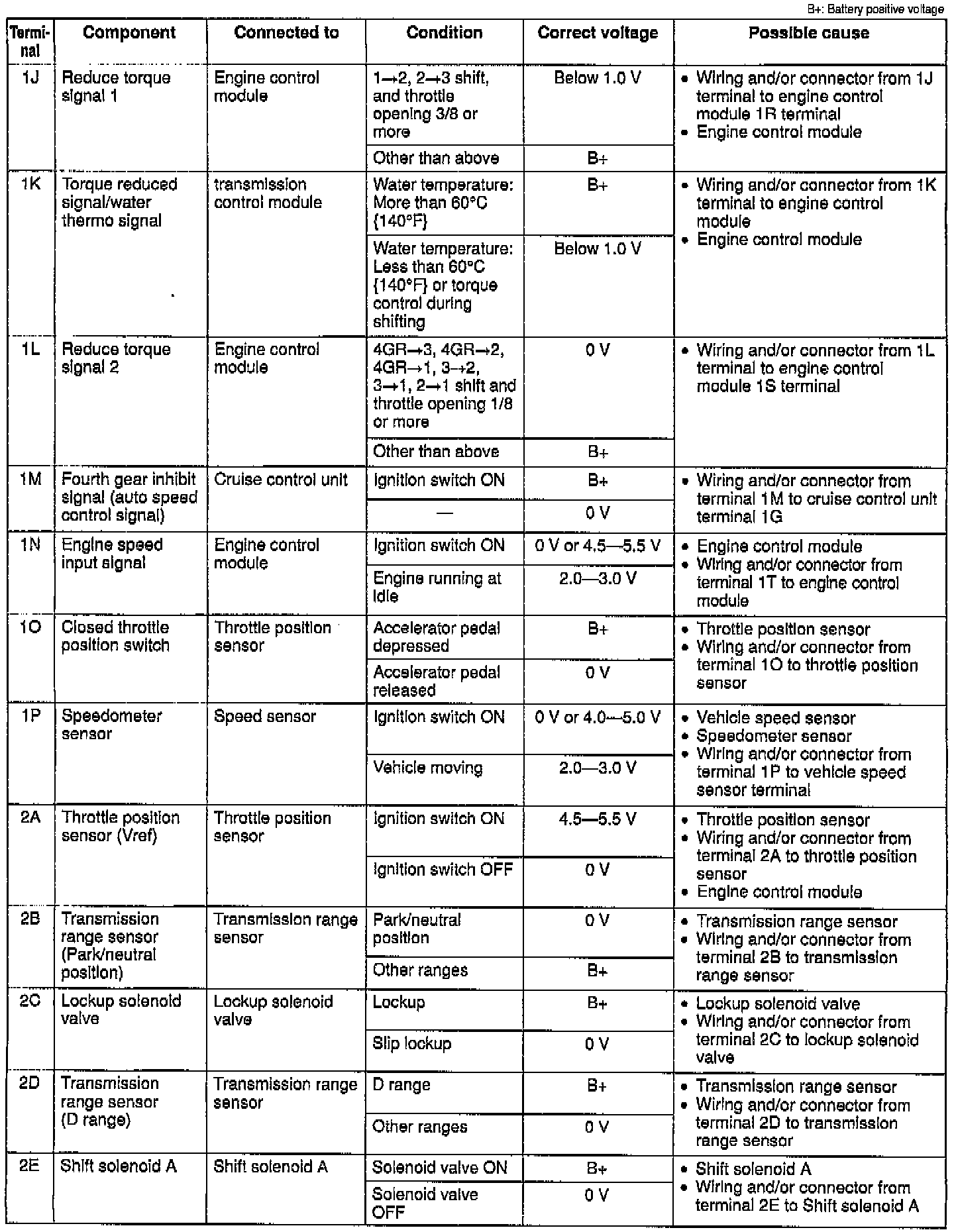 7. If any transmission control module terminal voltage is incorrect, check the related input of output devices and wiring. If no problem is found, replace the transmission control module.