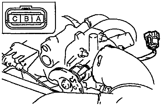 4. Measure the voltage at the harness side connector terminal A by using the voltmeter.