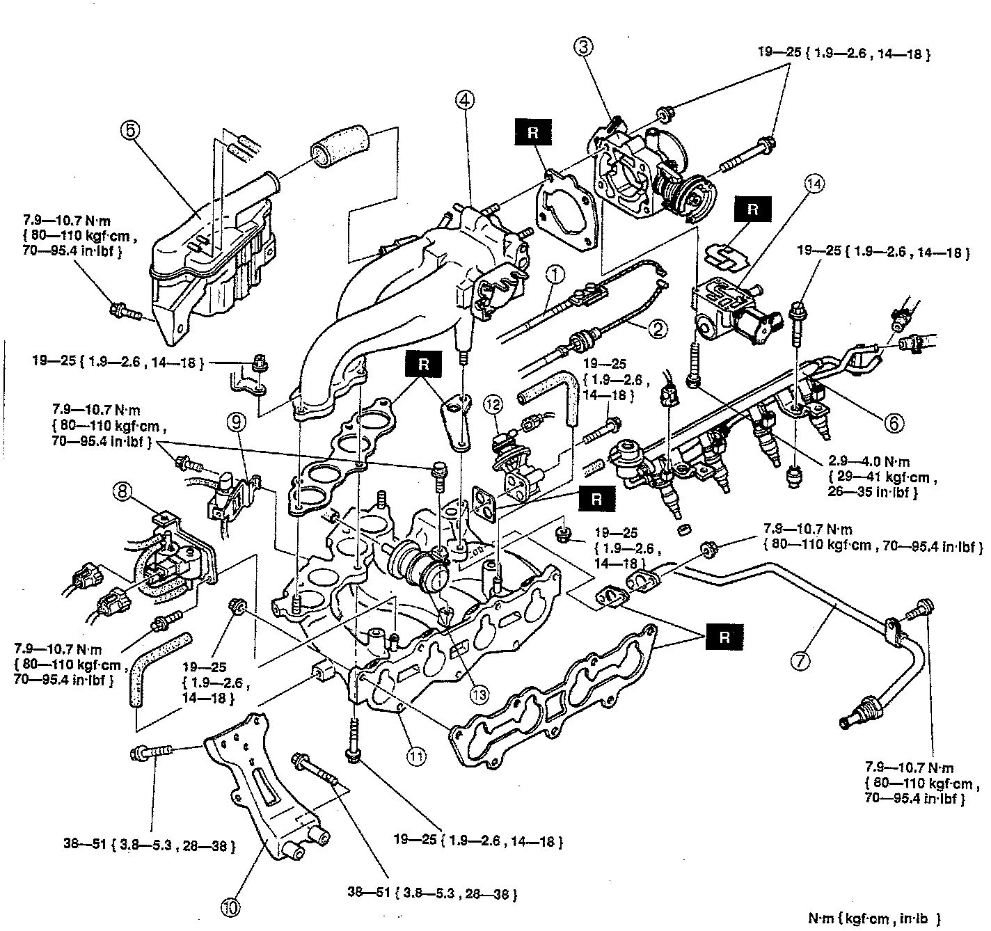 Face the bead of the gasket toward the intake manifold as shown, and install the intake manifold.