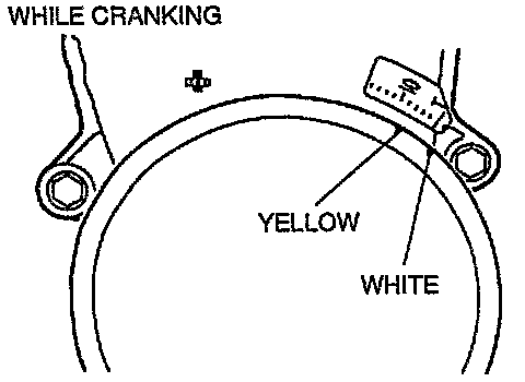 3. Verify that the timing mark (yellow) on the crankshaft pulley and the mark on-the timing belt cover are aligned.