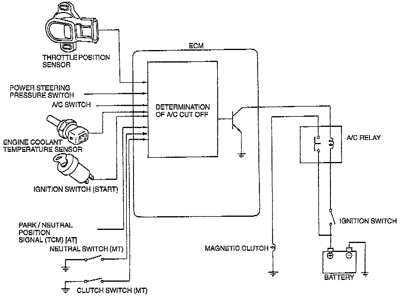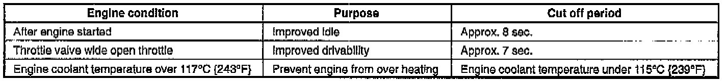 An A/C cut-off system in used to improve idle smoothness immediately after starting the engine and to improve acceleration performance.