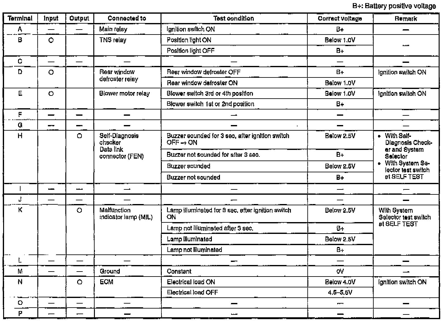 4. If any E/L module terminal voltage is incorrect, check the input or output device and related wiring harness. If they are normal, replace the E/L module.