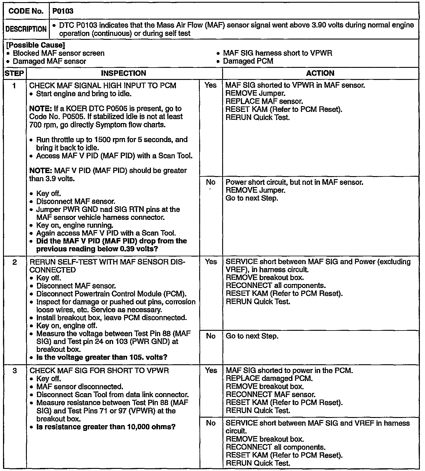 DTC P0103:
