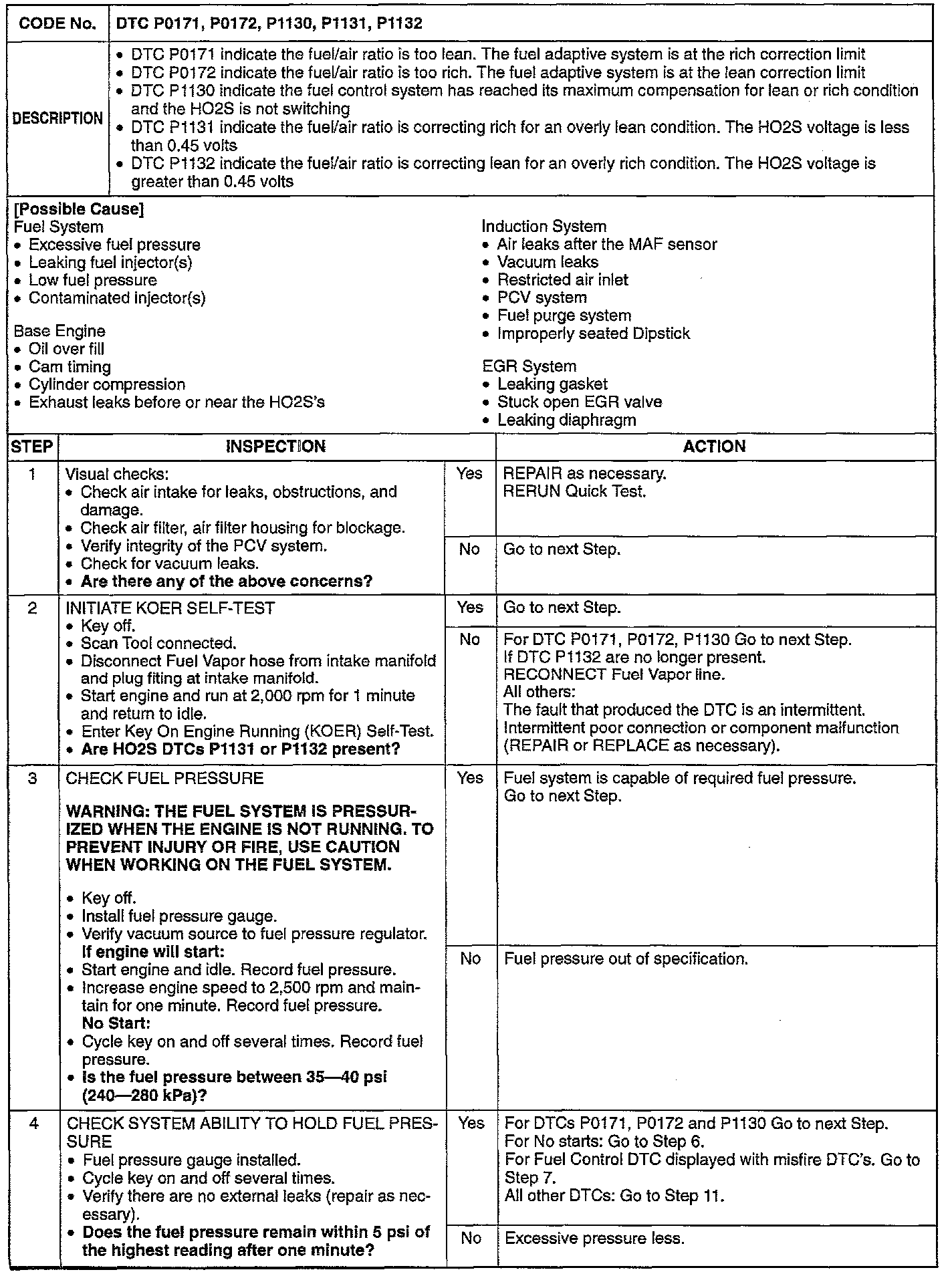 DTC P0171, P0172, P1130, P1131, P1132 Page 4: