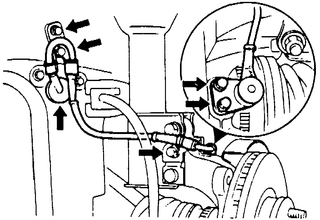 Fig. 161 Front Wheel Speed Sensor Retaining Bolt Locations: