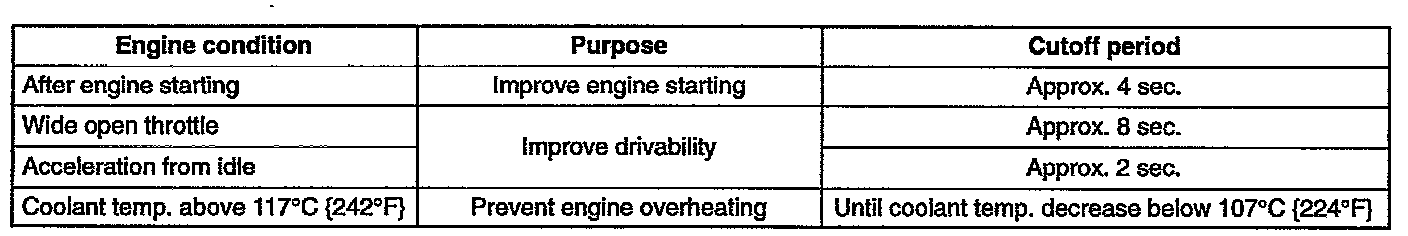 An A/C cutoff system is used to improve idle smoothness just after starting the engine and to improve acceleration performance.