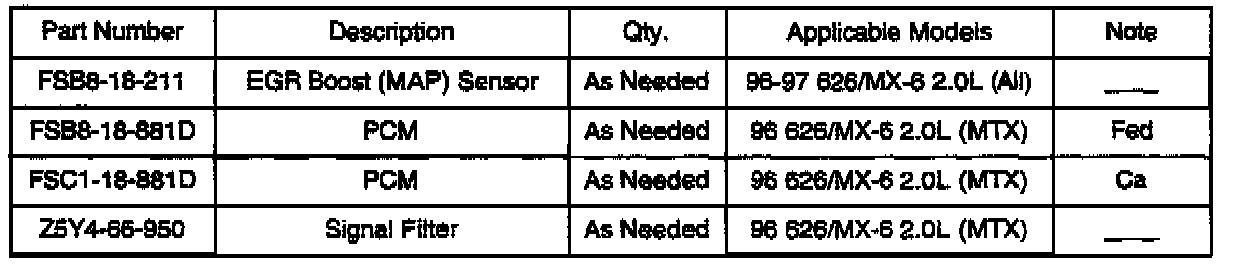 ^ PCM MIL misjudgment (1996 model with MTX) Customers complaining of this concern should have the vehicle inspected according to this bulletin and if necessary, repair.