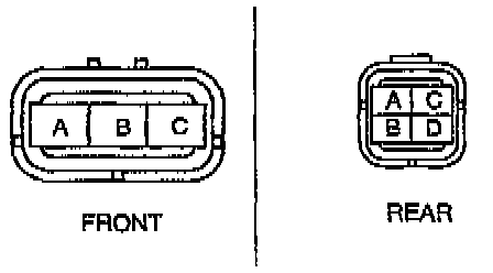 2. Measure the resistance between heated oxygen sensor heater (FRONT B-C, REAR C-D terminals) by using an ohmmeter.