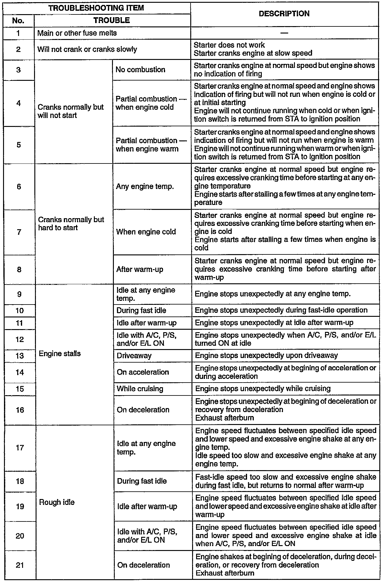 DESCRIPTION OF DRIVEABLITY PROBLEMS