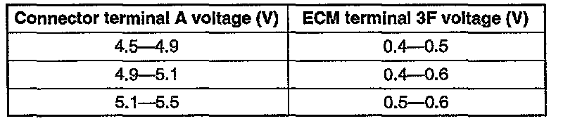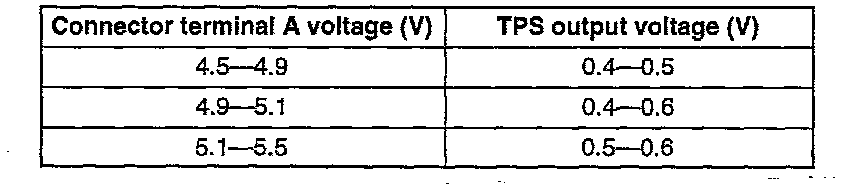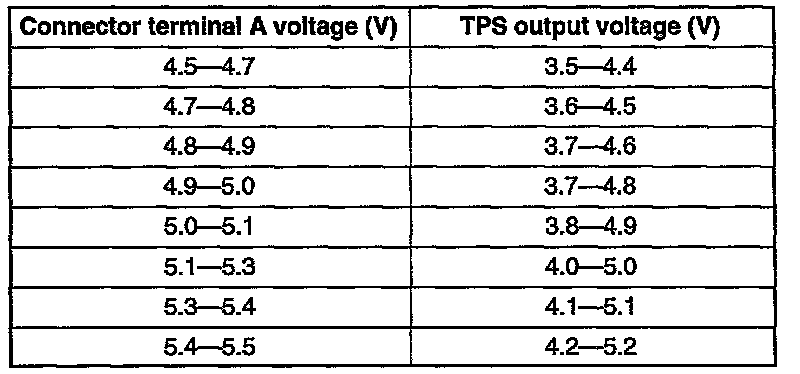12. Wide open throttle and verify that the TPS terminal voltage are within the specification.