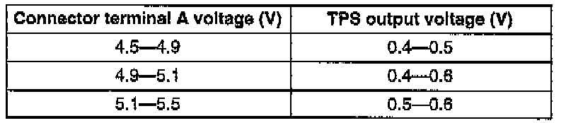12. Wide open throttle and verify that the TPS terminal volt- age are within the specification.