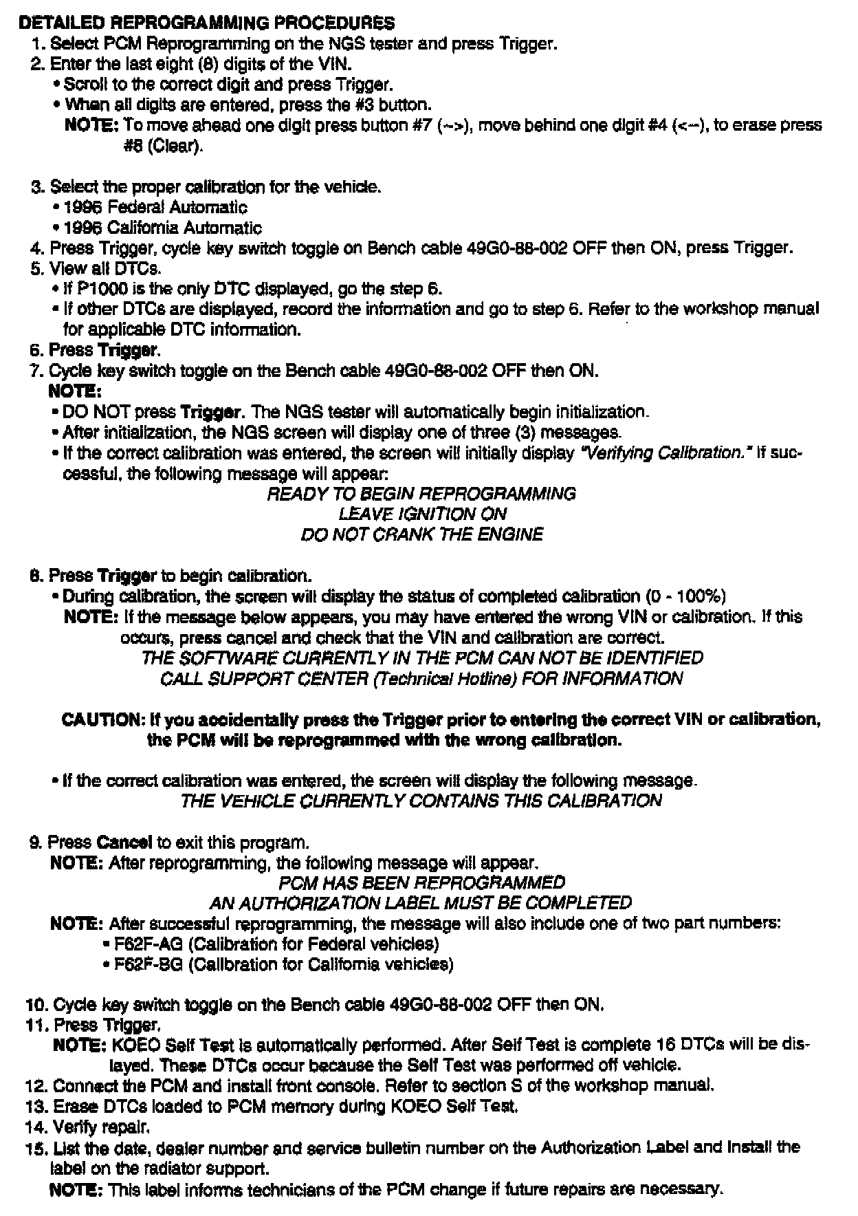2. Follow the prompts on the NGS tester to reprogram the PCM.