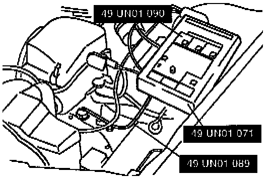1. Disconnect the emission harness at the solenoid body connector and at the TSS connector on the oil pump body in the LH wheel arch.