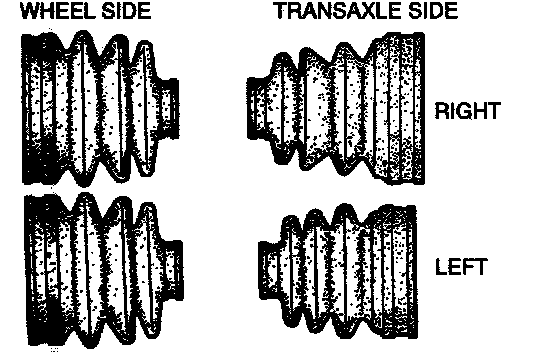 2. Install the wheel-side and transaxle-side boots, noting the shape and size of each one in the figure.
