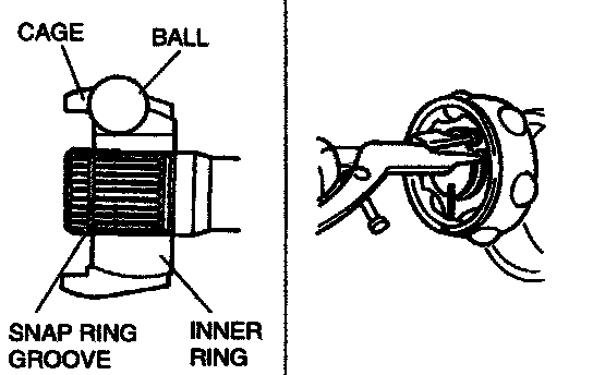 1. Align the marks and install the balls and cage to the inner ring in the direction shown in the figure.