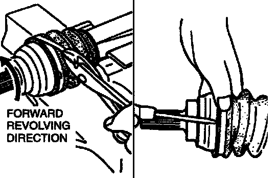 1. Fold the band back in the direction opposite the forward revolving direction of the drive shaft and use pliers to pull it tight.