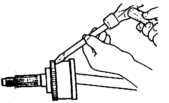 3. Remove the tripod joint from the shaft with a bar and a hammer.