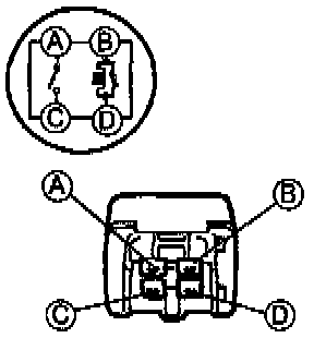 2. Apply battery positive voltage between terminals B and D.Check for continuity between terminals A and C.