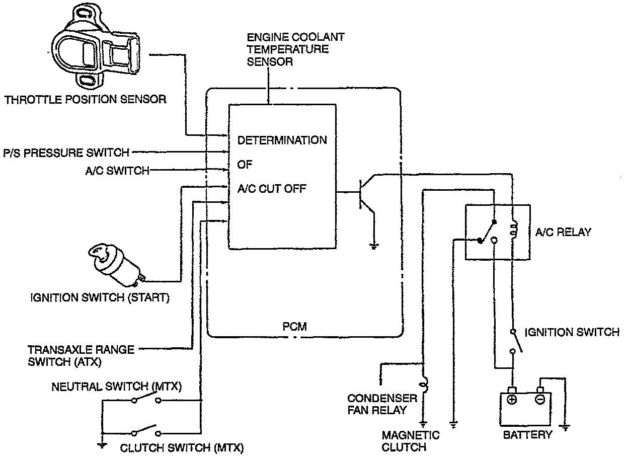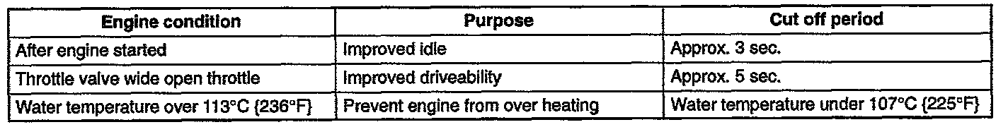 An A/C cut off system is used to improve idle smoothness immediately after starting the engine and to improve acceleration performance.