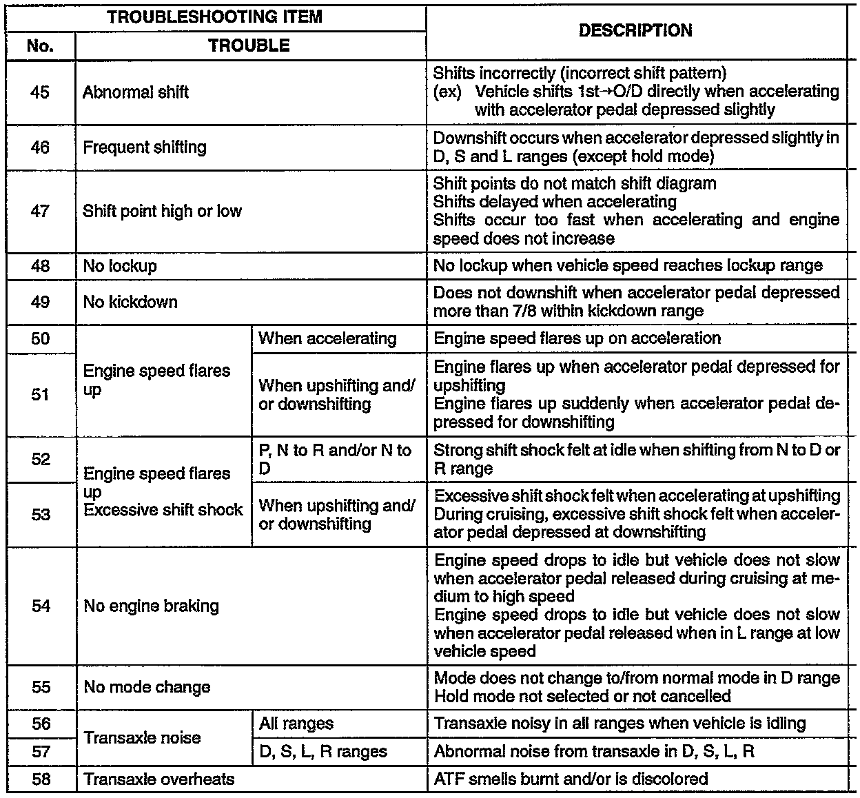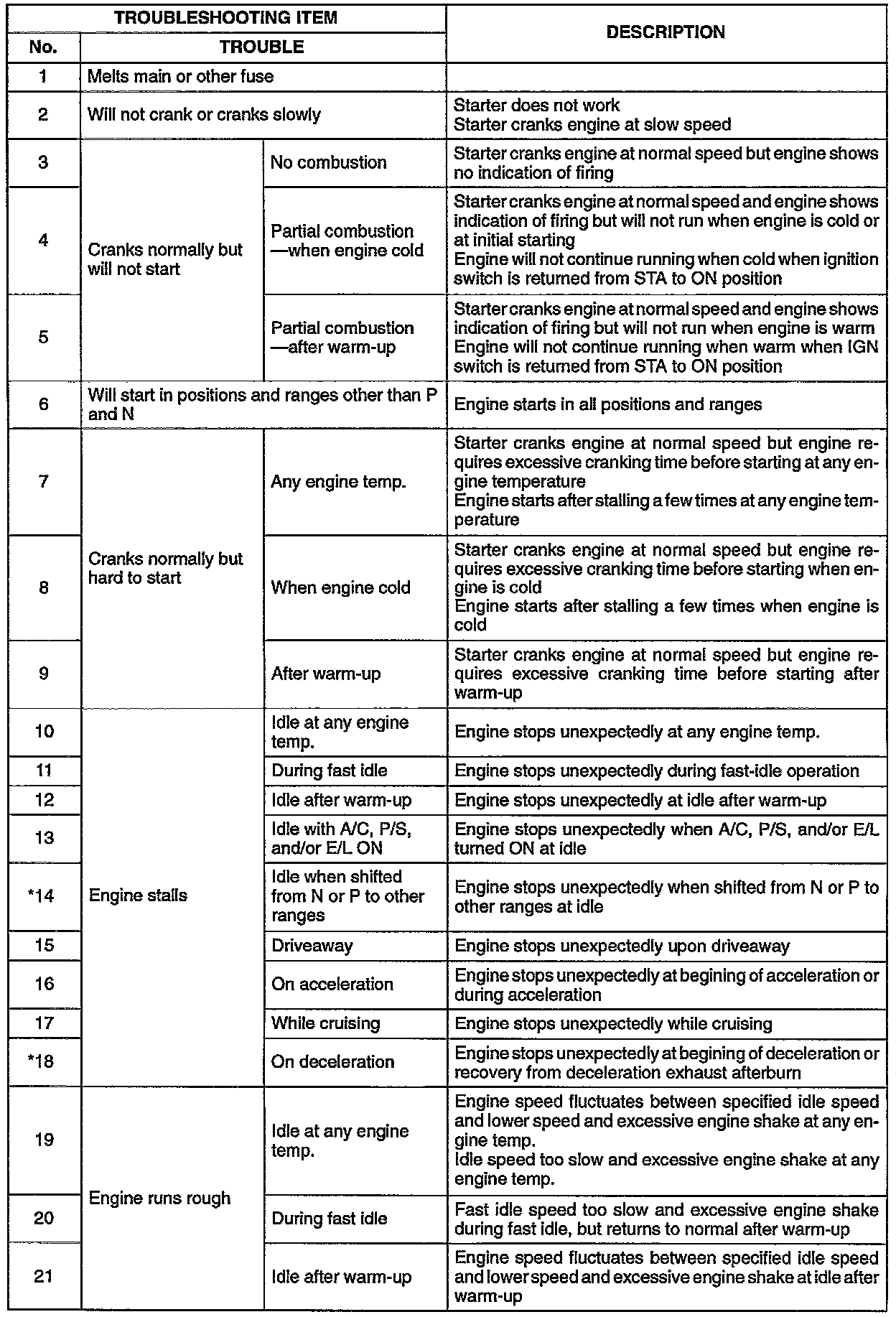 DESCRIPTION OF DRIVEABLITY PROBLEMS