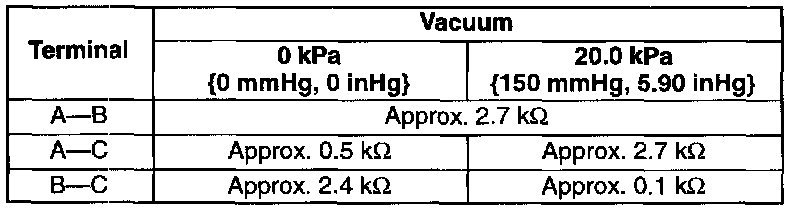 3. Use an ohmmeter to measure the resistance between the terminals as shown in the table.