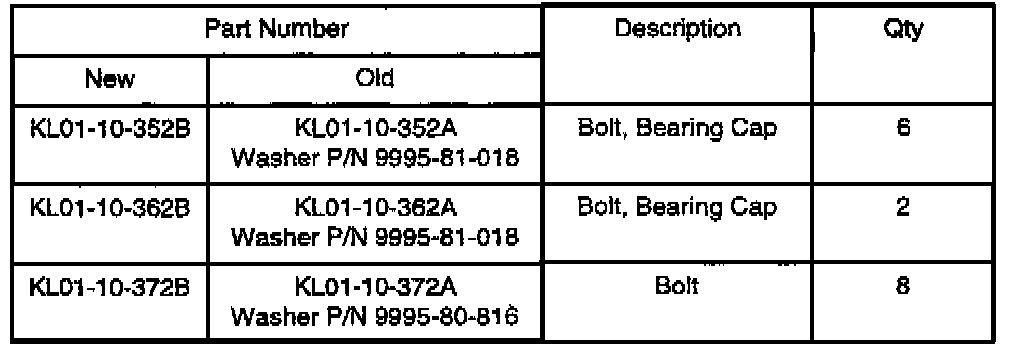 The lower cylinder head bolts for the above models are now shorter in length. Also, the washer under the head is eliminated. See comparison chart below for identification characteristics.
