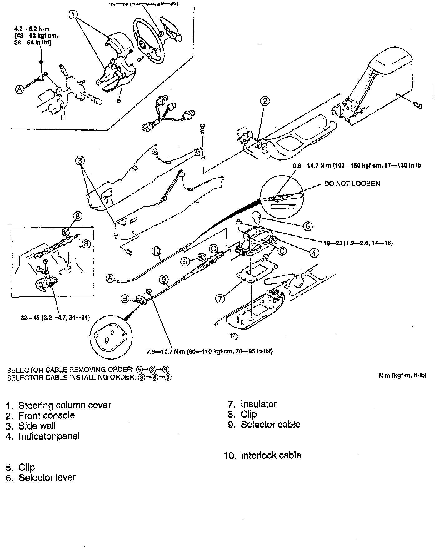 6. Install the interlock cable to the selector lever and tighten to 10 - 15 Nm (87 - 130 inch lbs.).