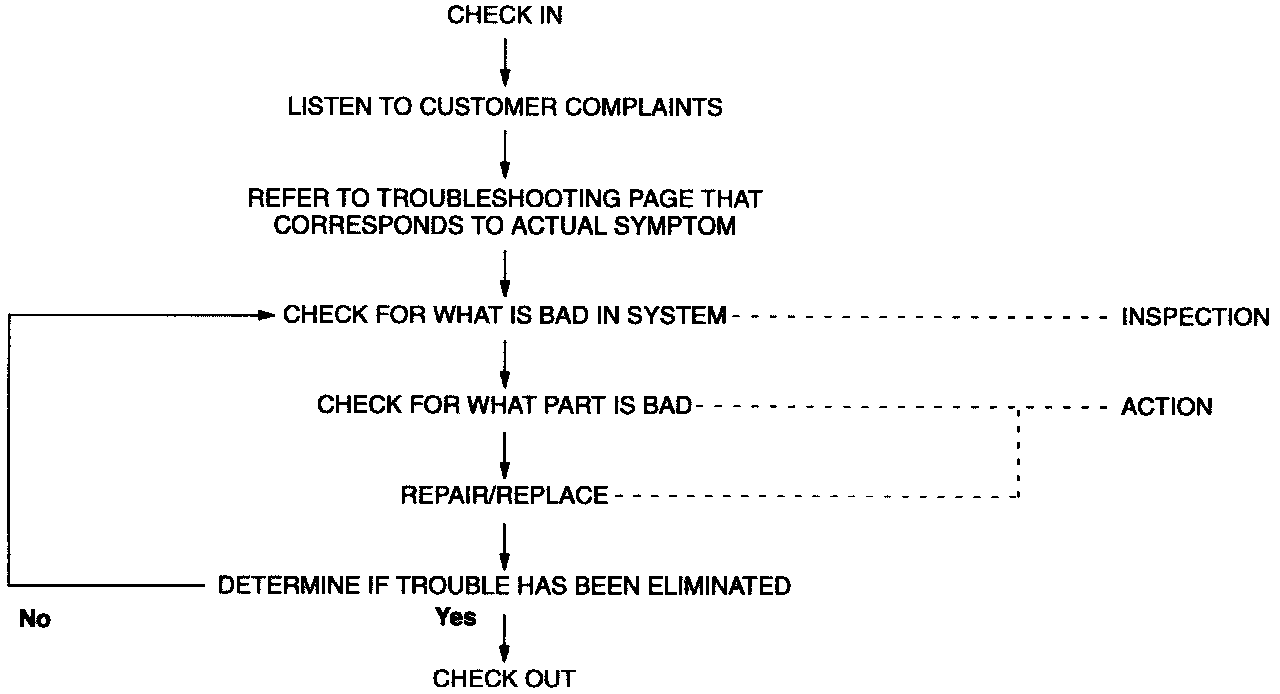 This shows the order of troubleshooting. Proceed with troubleshooting as indicated.