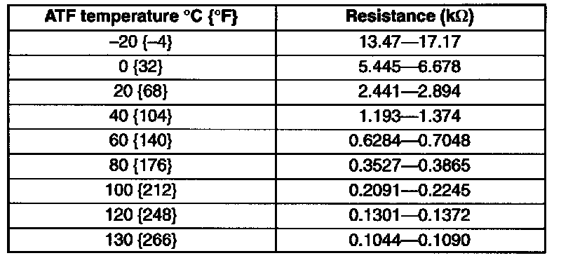 Transaxle Fluid Temperature Sensor Inspection: