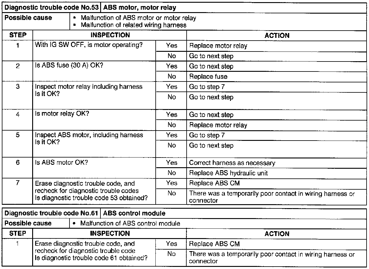 Fig. 28 Codes 53 & 61: ABS Motor, Motor Relay & Control Module: