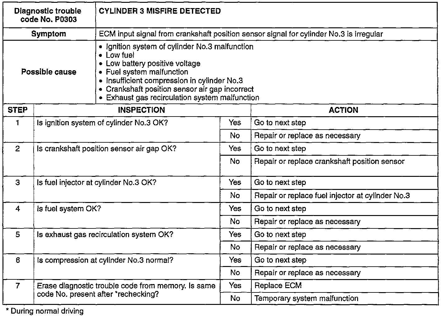 CYLINDER #3 MISFIRE DETECTED
