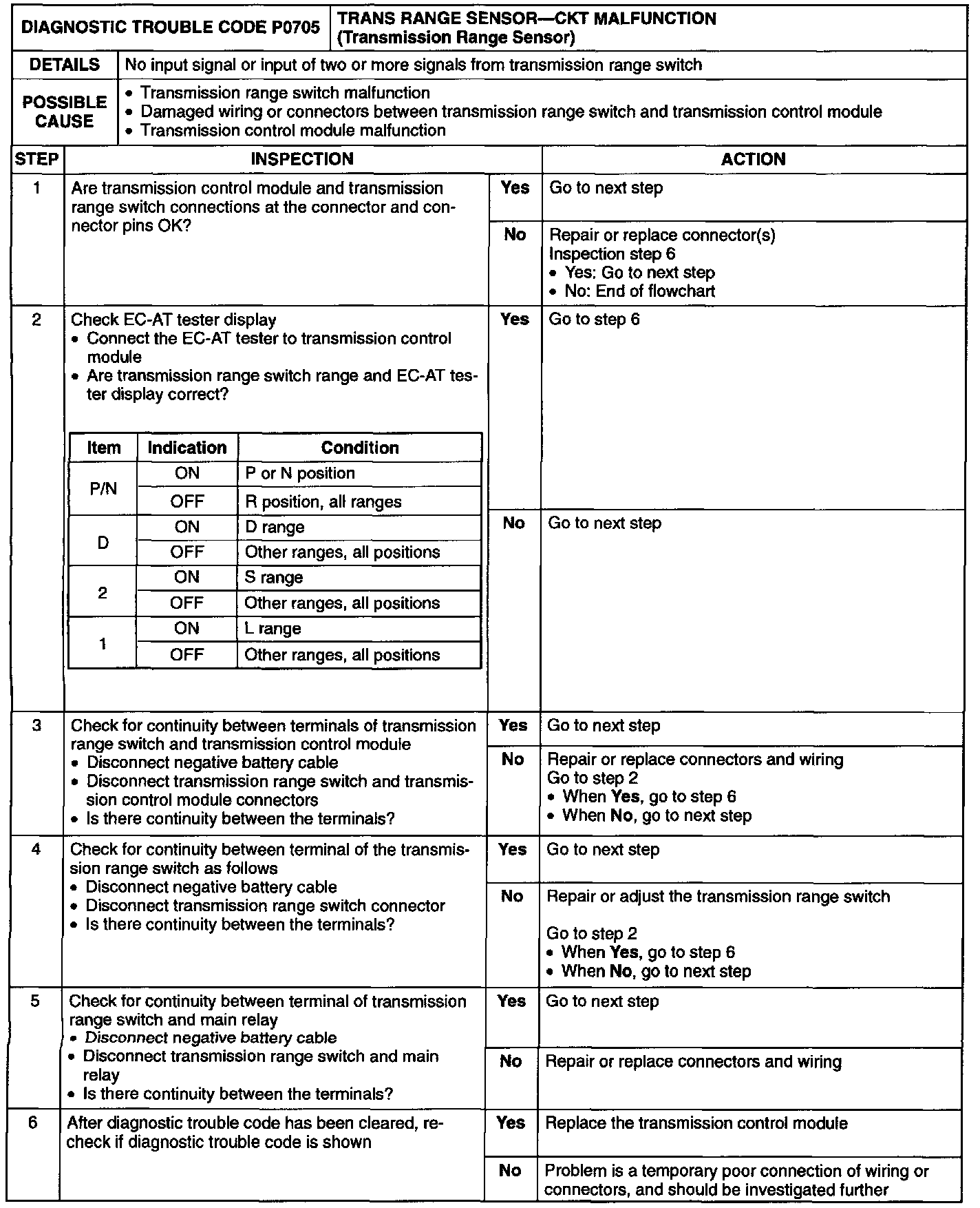 TRANSMISSION RANGE SENSOR CIRCUIT MALFUNCTION