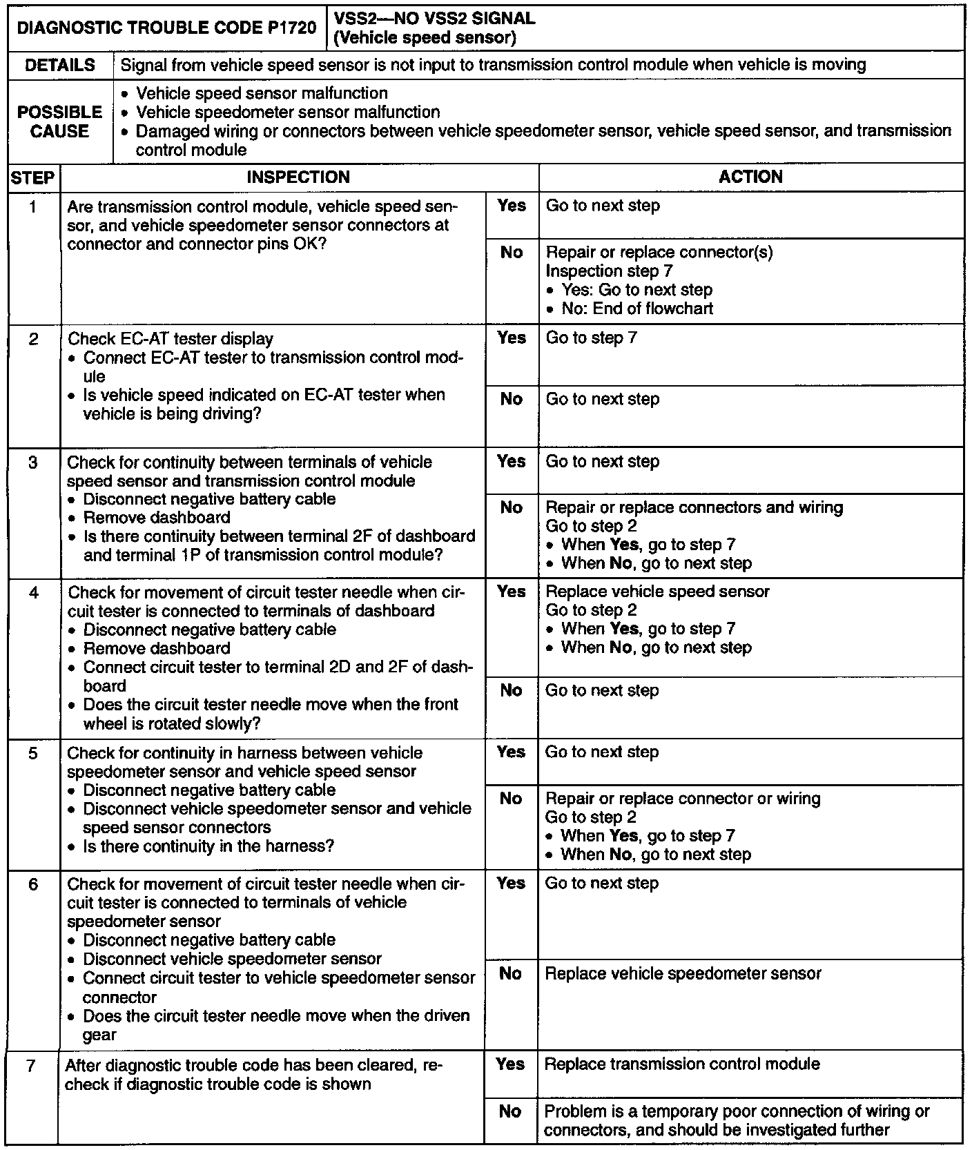 VSS2 NO VEHICLE SPEED SENSOR SIGNAL