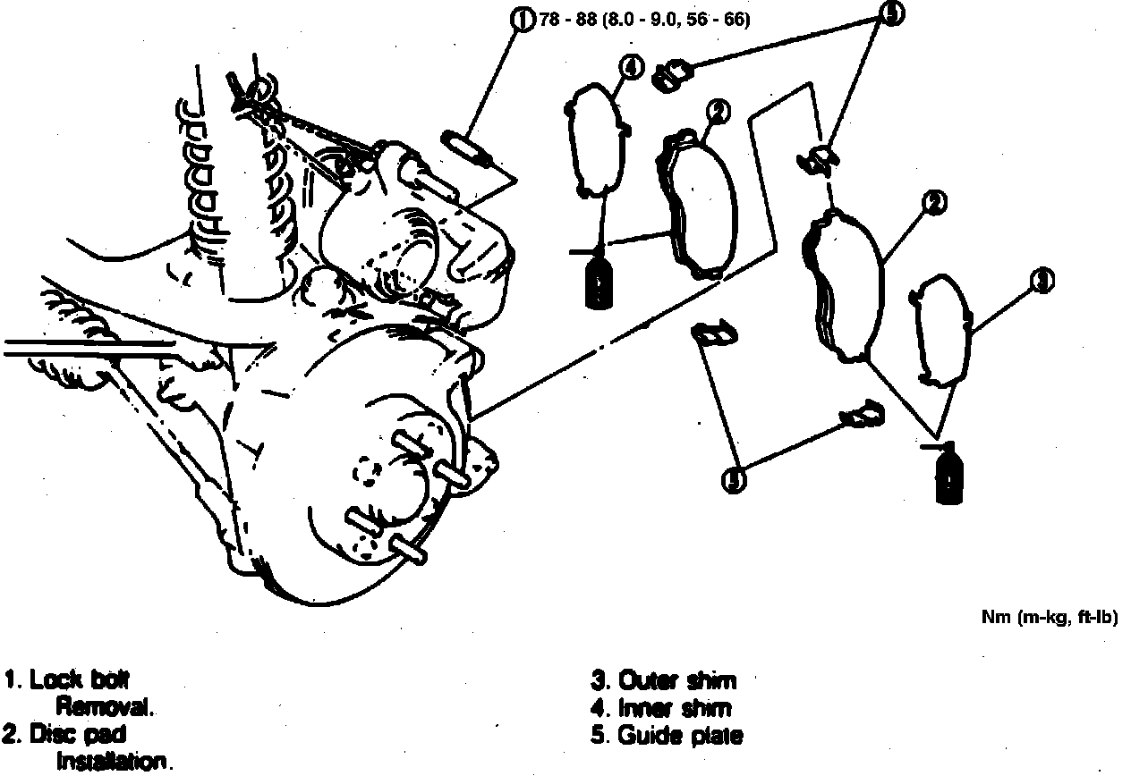 Fig. 1 Front Disc Brake Pad Replacement Procedure: