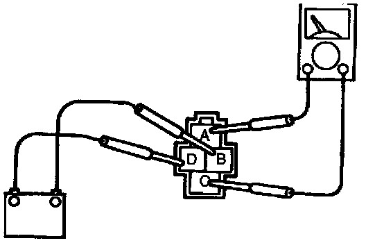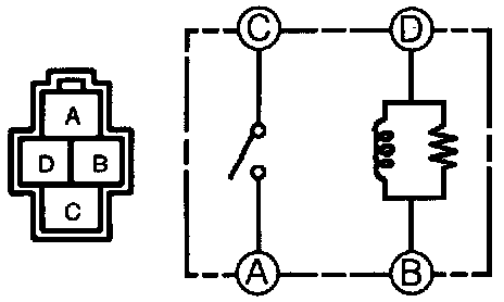 Apply battery positive voltage between terminals "B" and "D". Check for continuity between terminals "A" and "C".
