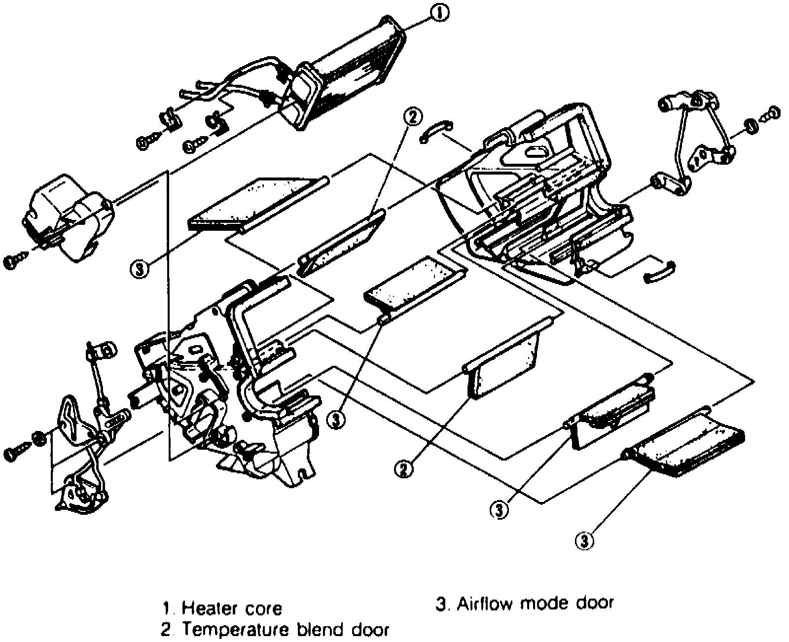 4. Disconnect heater hoses from heater unit inlet and outlet tubes, Fig. 7. Plug hoses to prevent coolant leakage.