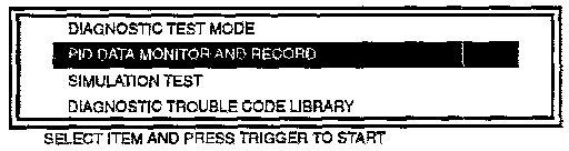 - Select the PID/DATA MONITOR AND RECORD function of the NGS.