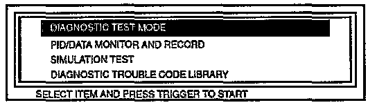- Select "DIAGNOSTIC TEST MODE function and press trigger.