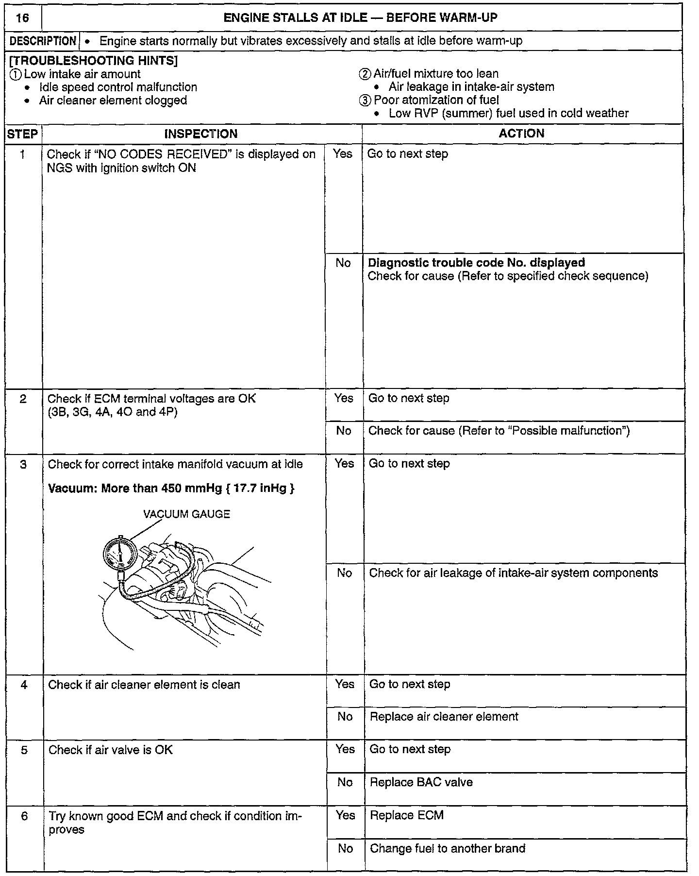 ENGINE STALLS AT IDLE/BEFORE WARM-UP