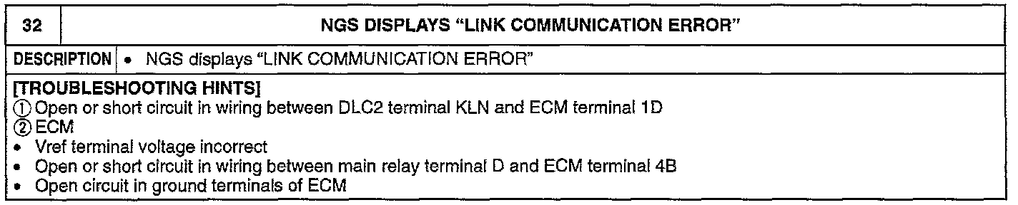 NGS DISPLAYS "LINK COMMUNICATION ERROR"