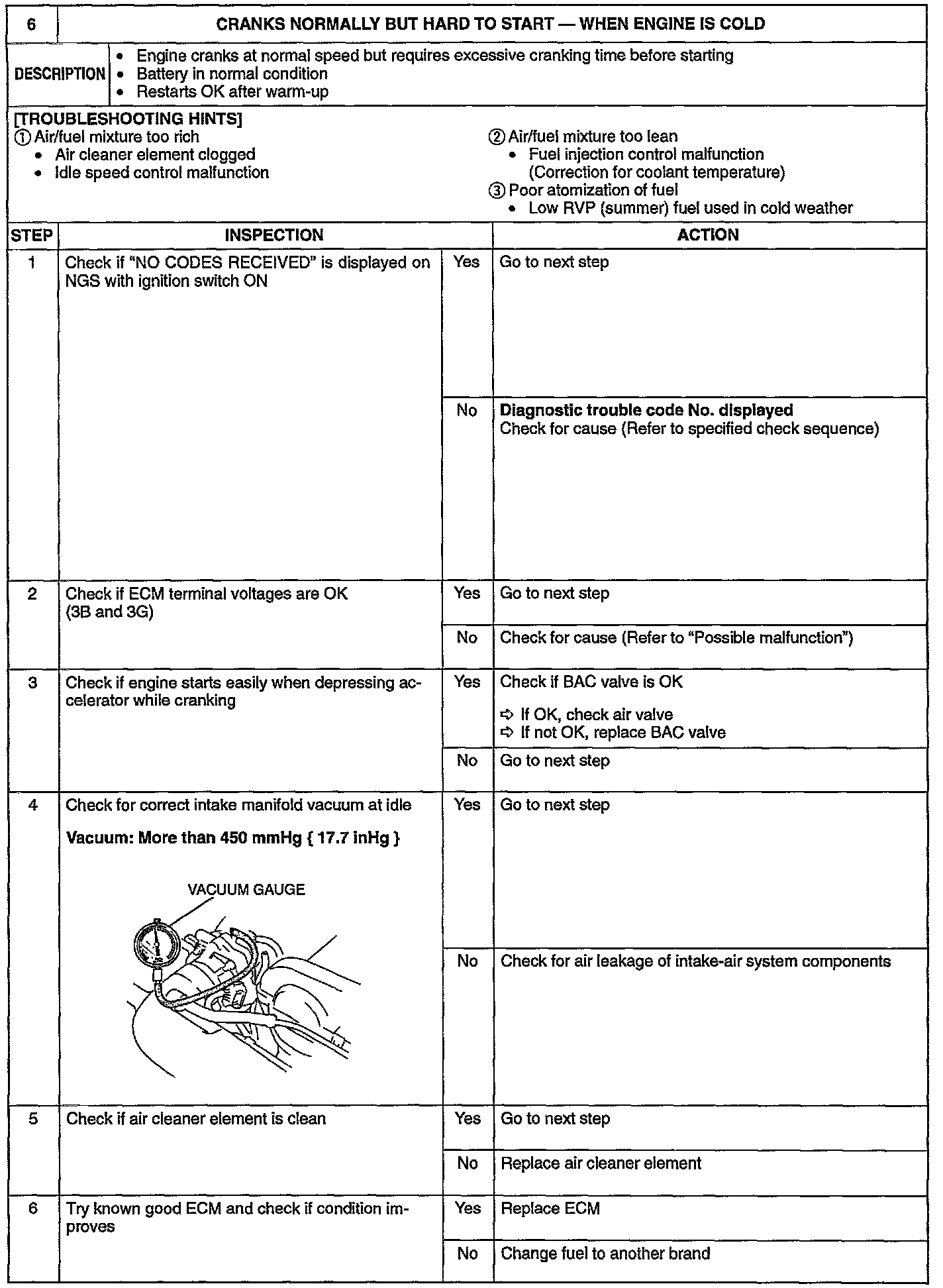CRANK NORMALLY/HARD TO START/ENGINE COLD