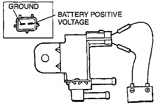 - Disconnect the purge solenoid valve connector and connect battery positive voltage and a ground to the terminals of the purge solenoid valve.
