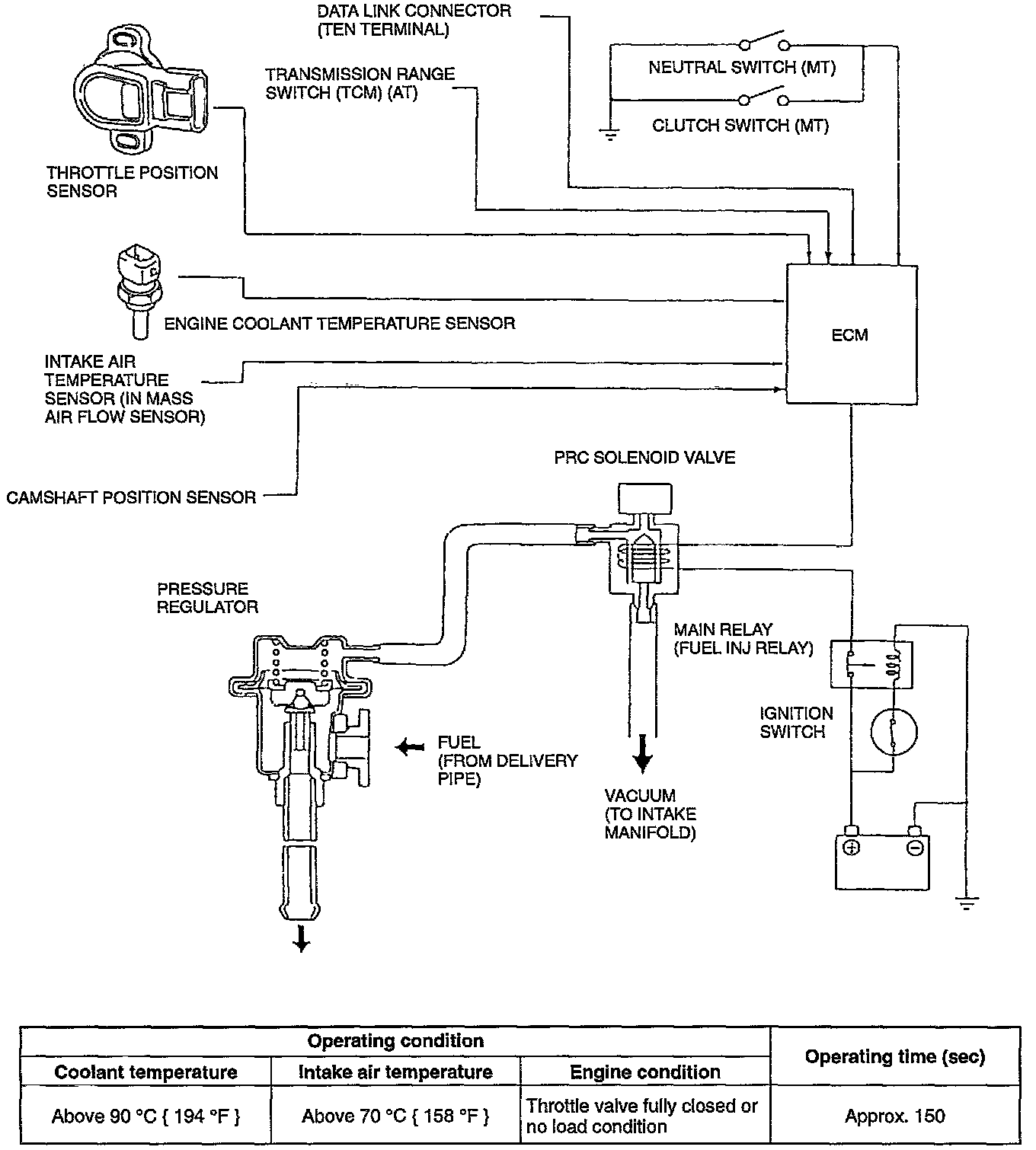 To prevent percolation of the fuel during hot restart idle, vacuum to the pressure regulator is momentarily cut, and the fuel injection pressure is increased to slightly more than: