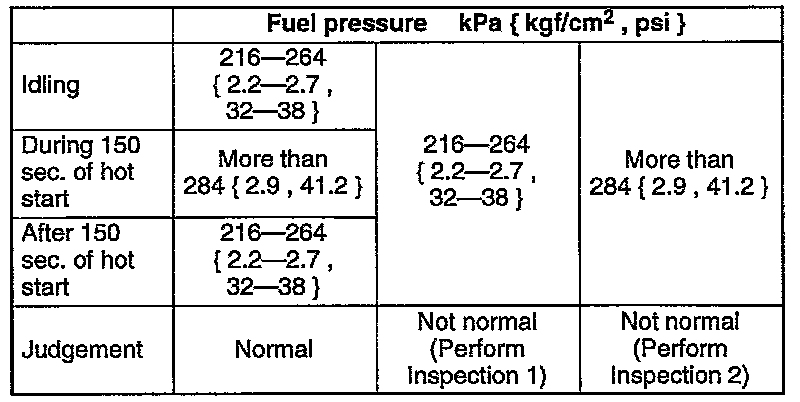 - If the fuel pressure is not within the specification. Carry out either Inspection 1 or Inspection 2.