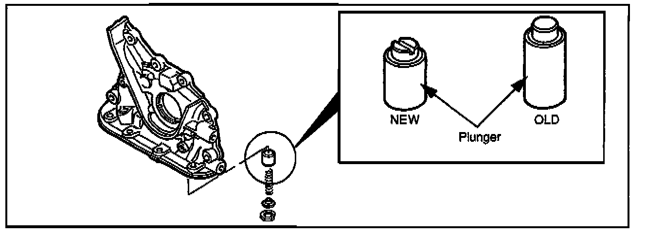 1. Vehicles with long oil pump control plungers as a countermeasure for HLA noise.The concern may be caused when the oil pump control plunger becomes struck When this occurs, the oil pressure becomes excessive. The high pressure is applied directly to the HLA, which pushes the valve down and prevents complete dosing.